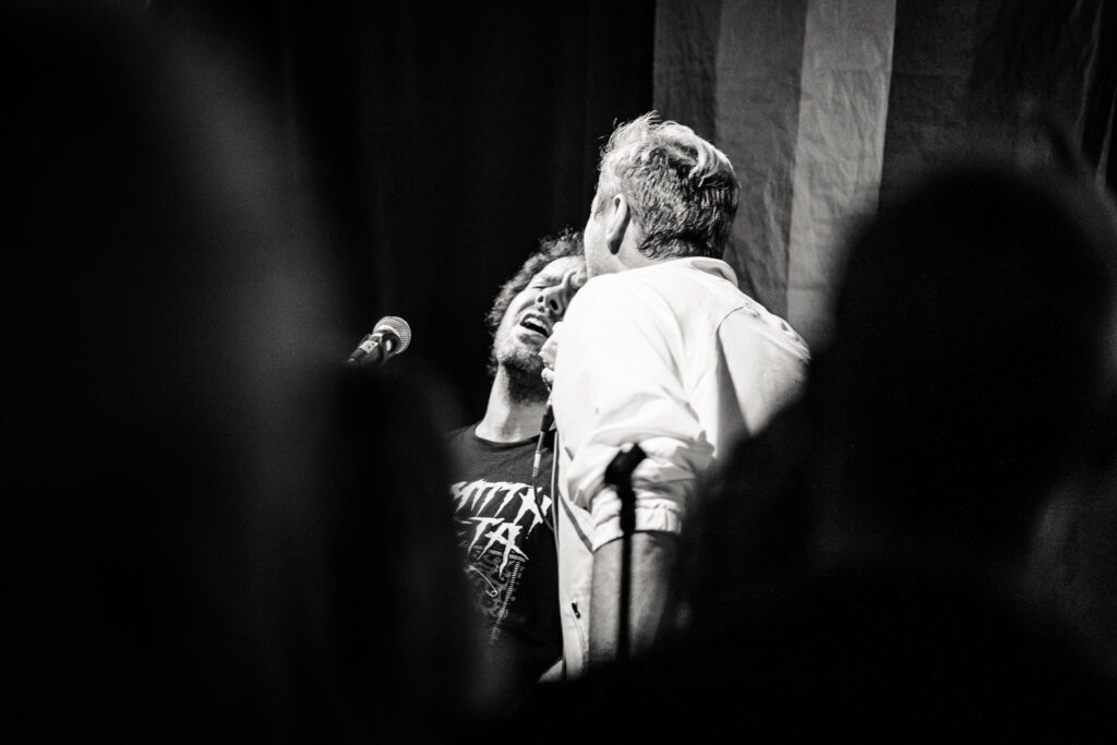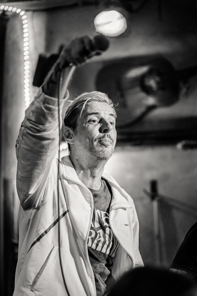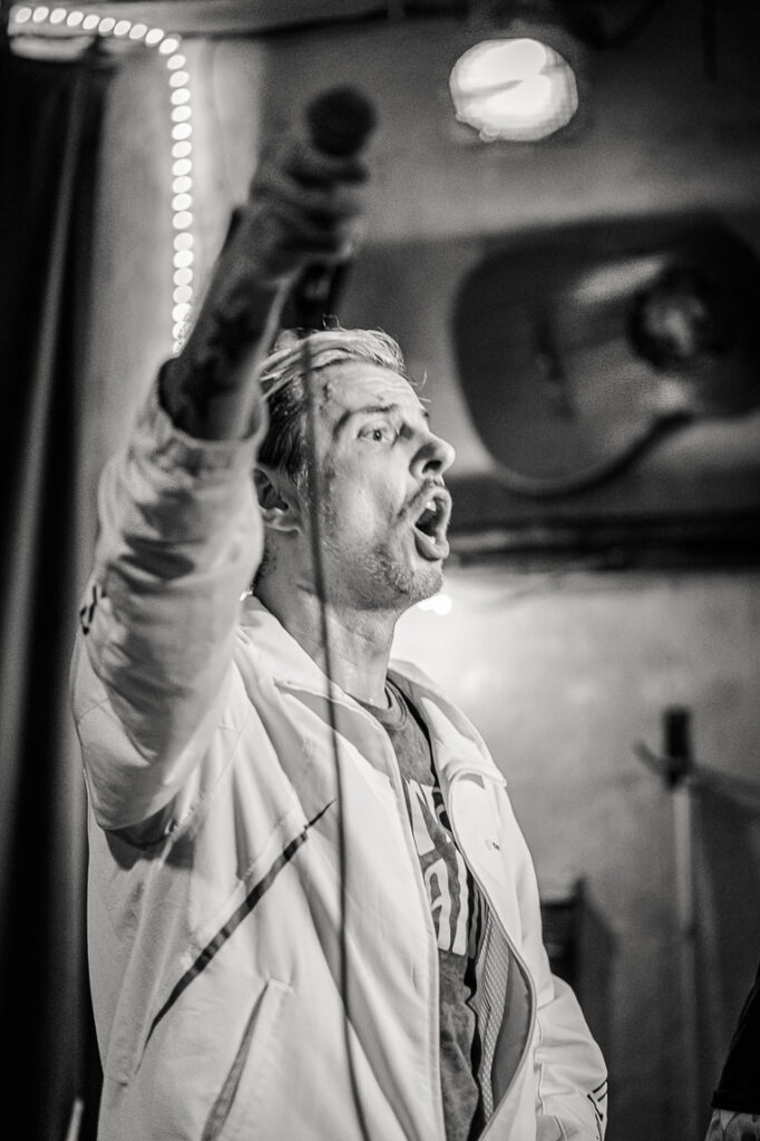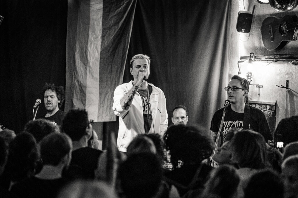 Es macht absolut keinen Sinn, auf einer Seite, die eigentlich immer nur meckert, über eine Band zu schreiben, die sogar über sich selbst schlecht redet. Hach, das war schon mal ein herrlicher erster Satz zum Einstieg! 5 Farben Scheiße also live im Sumpf. Den Opener machten Loretta und die reibungslosen Abloi!fe, von denen ich vorher noch nie was gehört hatte. Hatten zwar ne ordentlich Fanbase am Start, aber wir haben hier bei Konzerte, Bilder, Sensationen natürlich keinerlei Interesse, eine Band in irgendeiner Art zu featuren. Ich hab auch extra keine Fotos von ihnen gemacht, um einer Klage zu entgehen. Wer weiß, vielleicht sind sie im echten Leben Beamte und wollen nicht erkannt werden…