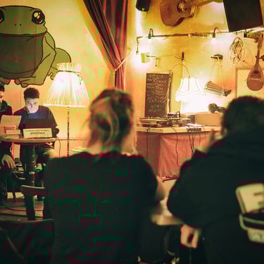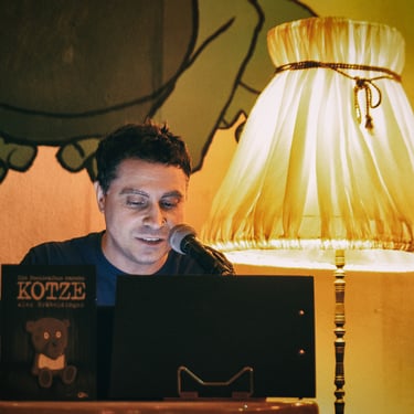 Maximal entspannte Konzerte & Lesungen hat sich der SLOW MOTION CLUB auf die Fahnen geschrieben und eine maximal entspannte Lesung gab es dann auch an diesem Samstagabend. Früher hätten wir den Laden auseinander genommen, wenn da irgrendwas mit "entspannt" auf dem Flyer gestanden hätte. Im voranschreitenden Alter ist es aber definitiv ein Grund mehr hinzugehen! Und verdammt nochmal, es wurde auch Zeit, dass sich Alex Gräbeldinger mal nach Darmstadt verrirrt, schließlich musste ich mir schon oft beim Lesen seiner Geschichten im OX-Fanzine die Augen kaputt machen (Schriftgröße lässt grüßen). Da ist es nur fair, dass er jetzt mal den scheiß Job übernehmen muss und mir seine Storys selbst vorliest! Während ich also genüsslich an dem ein oder anderen Kaltgetränk nippe, liest Gräbeldinger Geschichten, wie er z.B. als Kind mit dem Rauchen aufhörte, um sich danach direkt tättowieren zu lassen. Alles richtig gemacht!