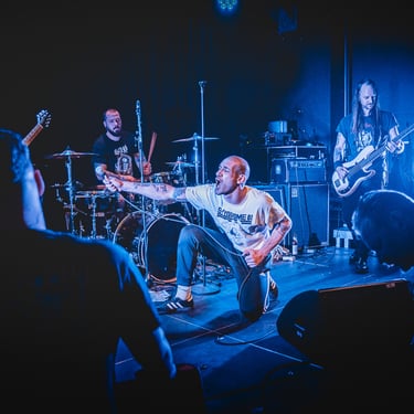 Nun sollte also der sogenannte Headliner auf die Bühne kommen. Ich erinnere mich noch an mein erstes HAMMERHEAD Konzert, damals im Juz Bad Nauheim. Da ist man einfach hingefahren, hat sich 'nen Stempel geben lassen und ist rein. Heute machen die dagegen irgendwie einen auf Rockstar, so mit langer Schlange an der Kasse und ausverkauftem Haus. So heiß wie heute war es damals auf dem Konzert definitiv auch nicht. Scheiß Klimawandel! Und noch etwas ist mir aufgefallen: Bei guten Bands erkennt man den Unterschied zwischen den älteren und neueren Songs am Pogo und der Textsicherheit des Publikums. Bei HAMMERHEAD wurde aber einfach alles abgefeiert. Um an dieser Stelle Herbert Grönemeyer zu zitieren: "Was soll das?"