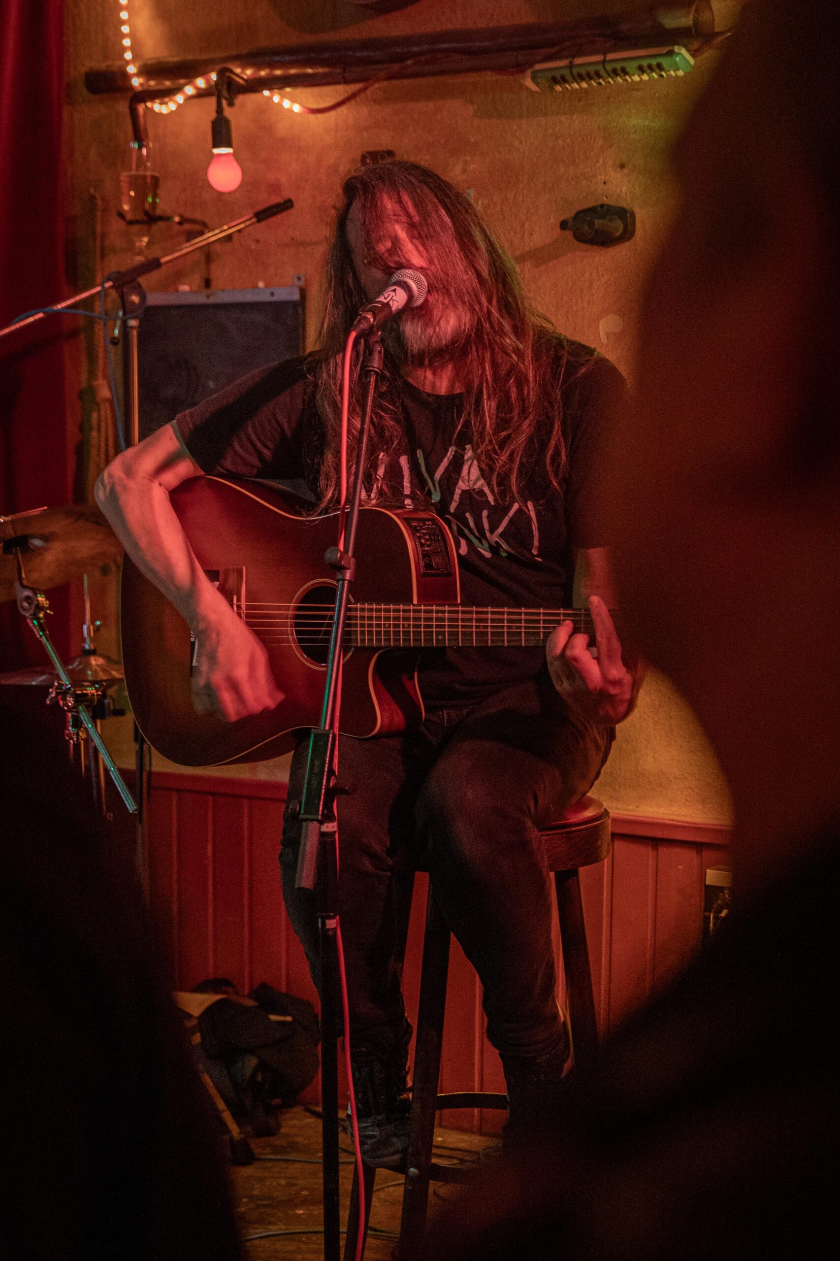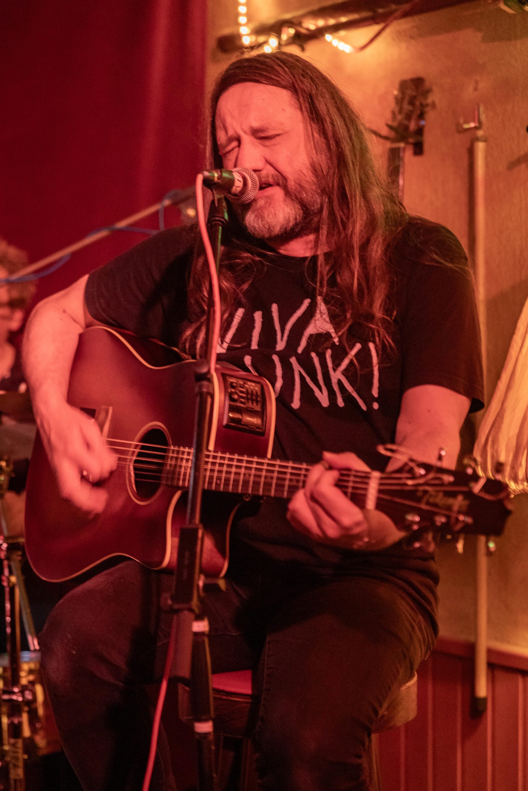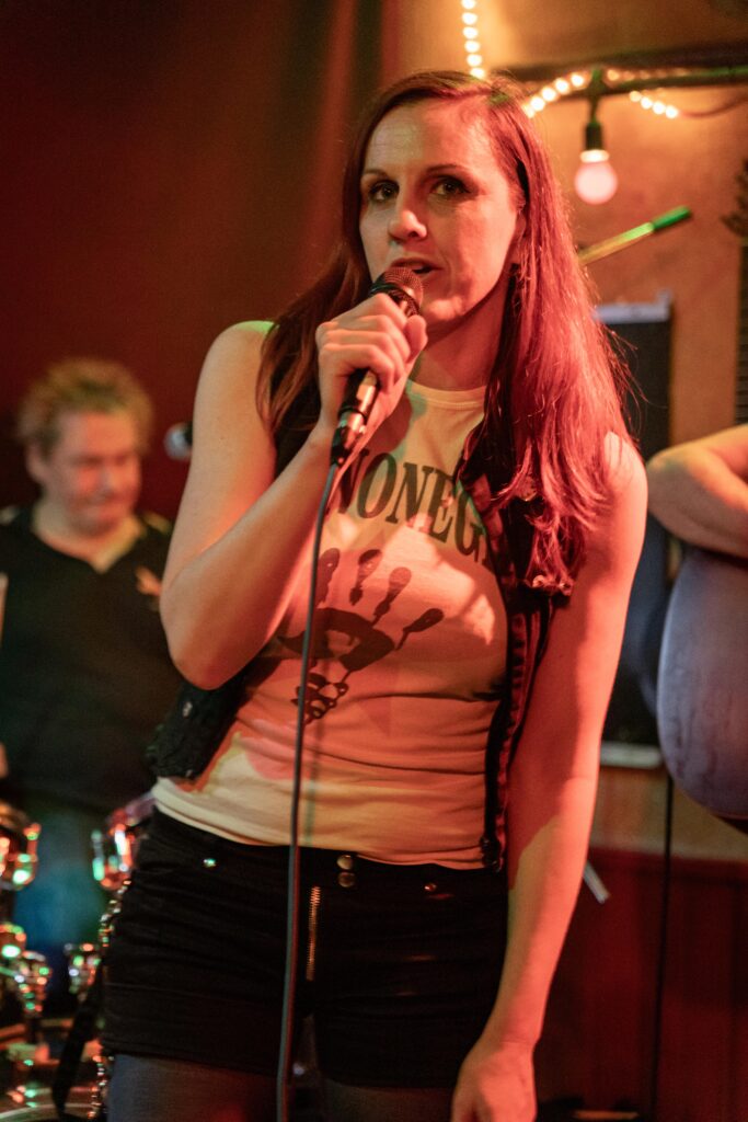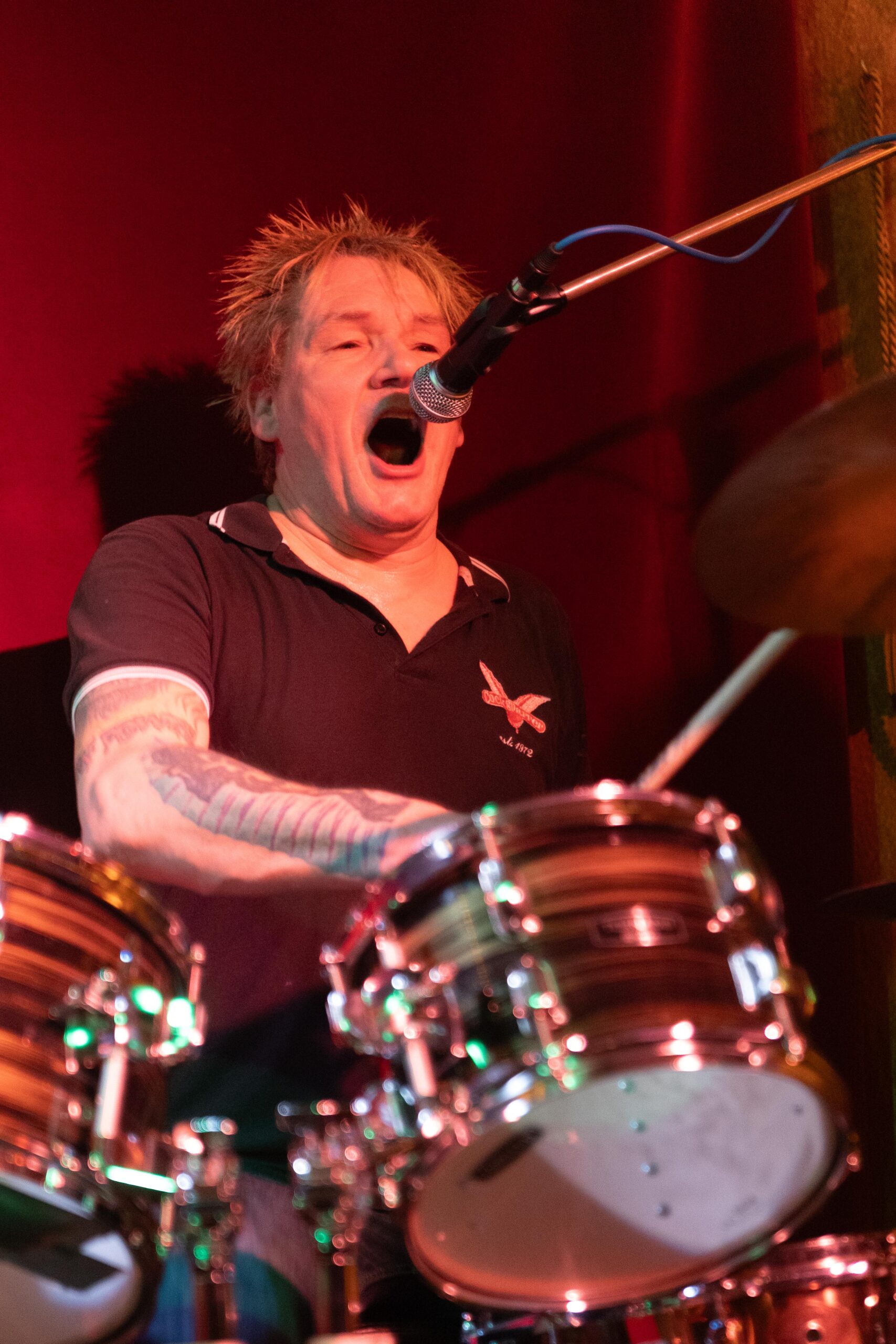 Eintritt war frei, ein Hut ging rum, der auch recht gut gefüllt schien. Sauber! Mit „Blitzkrieg Bop“ ging’s los, doch der Darmstädter Pöbel brauchte noch zwei, drei Songs, um richtig auf Temperatur zu kommen. Das kommt halt davon, wenn der Veranstalter zu geizig für eine Vorband ist, haha. Nach Hits von TV Smith und den Ärzten (oder waren es doch die Suurbiers?) wurde dann doch ziemlich schnell auch in den hinteren Reihen mitgeträllert. Drummer Berny machte ein paar böse Ansagen, die ihn fast den Rausschmiss aus der Band gekostet hätten. Aber mal ehrlich: Wer sein Bier so elegant in einer Gitarrenhalterung abstellen kann, den wirft man nicht einfach so raus. Niemand in der Kneipe hatte erwartet, dass das den ganzen Abend gut geht. Die Stimmung kippte nochmal ganz kurz, als irgendein Honk auf die Bühne gebeten wurde, um die „Schwarzwaldklinik“ von den Toten Hosen zu singen. War aber zum Glück schnell vorbei, und nichts ging zu Bruch.